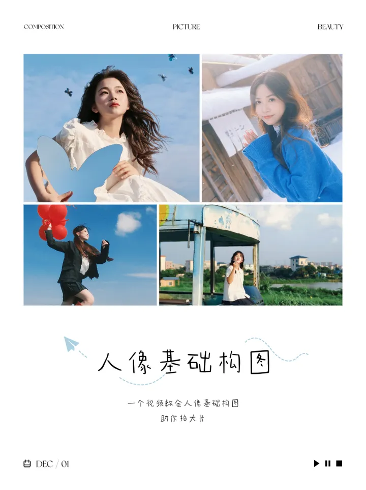 很多小伙伴在拍女孩子的时候不知道如何拍得更好看,一个视频教会你如何做好构图~对于新手来说最好打开九宫格,方便看构图,然后按照三分线构图、中心构图、引导线构图等方式,多尝试,肯定能拍出好的照片的~