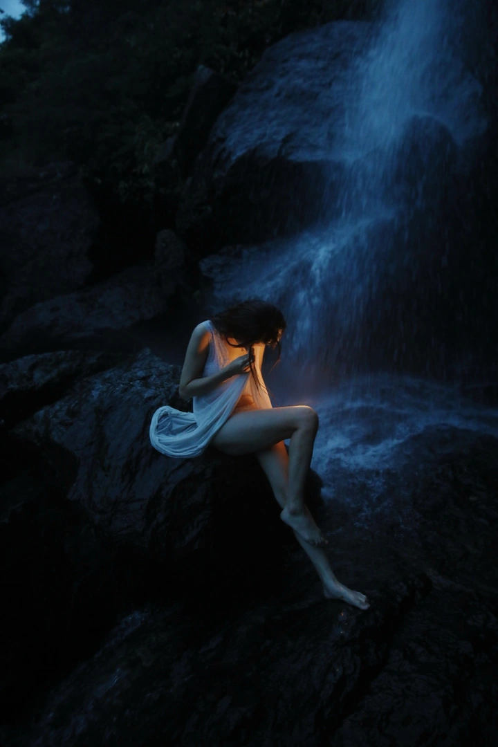 她把自己折成一道瀑, 在石壁的阴影里。 月光漂白的长发, 是另一种水流形态。 暗处传来水声的耳语, 她静坐如未启封的琴。 那些被夜色浸透的岩石, 渐渐长出柔软的轮廓。 光,这固执的纵火犯, 只点燃她肩头一小片雪。 而整座山谷的黑暗, 正练习如何轻轻托住, 这易碎的瓷器。