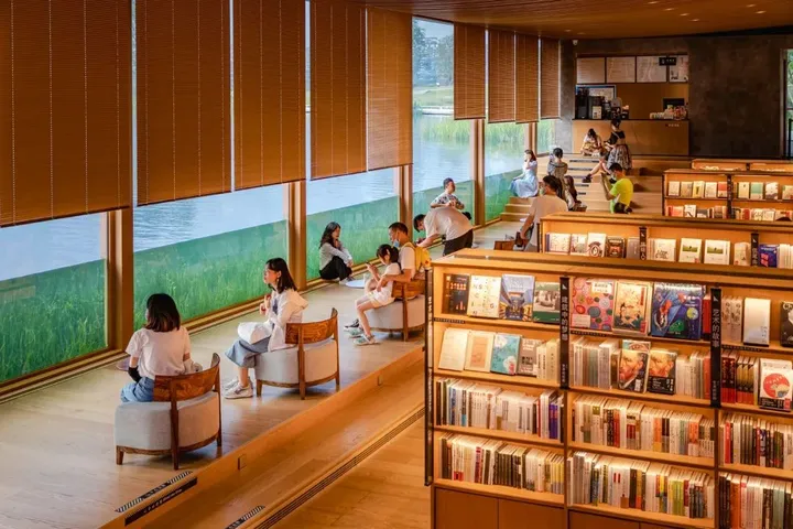 兴隆湖湖畔,一个小而美的建筑安静地屹立于此,弧形的大屋面,宛如是被风吹起的书页,是天府新区宛在水中央的最美书店——湖畔书屋。