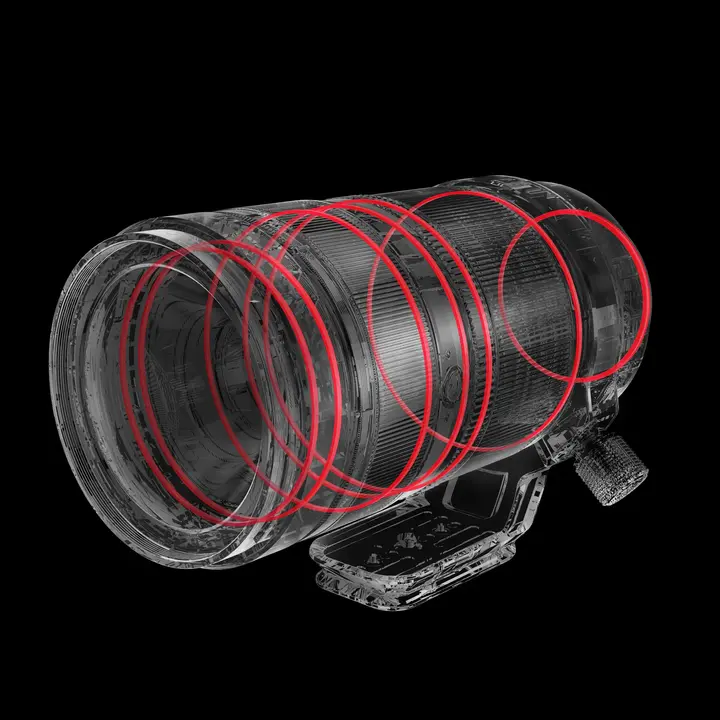 通过优化镜片结构与双相位线性马达驱动的使用,镜头实现了全长仅196.1毫米的紧凑设计,重量为1285g,口径80mm,最大直径92mm,紧凑的光学设计和先进对焦驱动马达,让这支镜头提供卓越的超远摄性能的同时更便携。