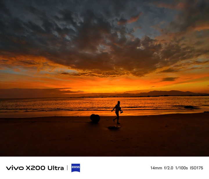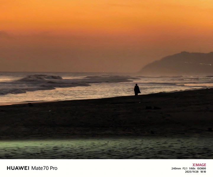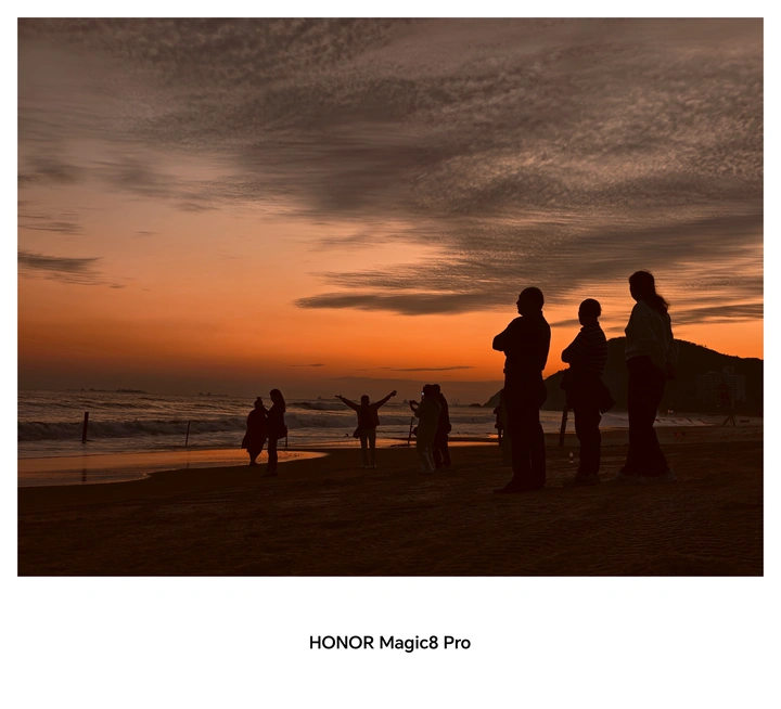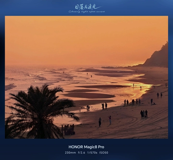 海岸揉碎橘光,人影定格浪漫。