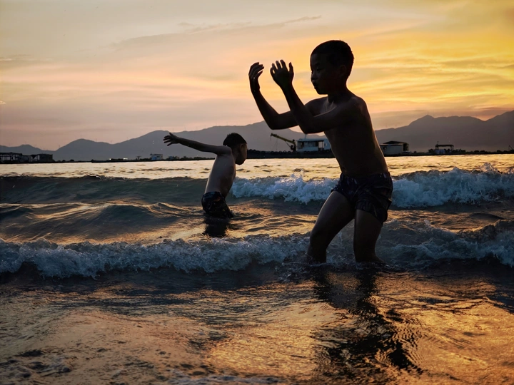 落日揉碎在浪里,童年在海边撒野。