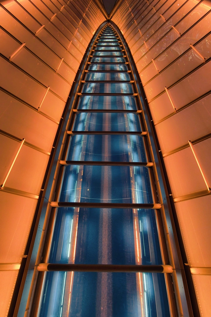 金属的线条拉扯着视线往深处走,像闯入城市藏起来的浪漫隧道。