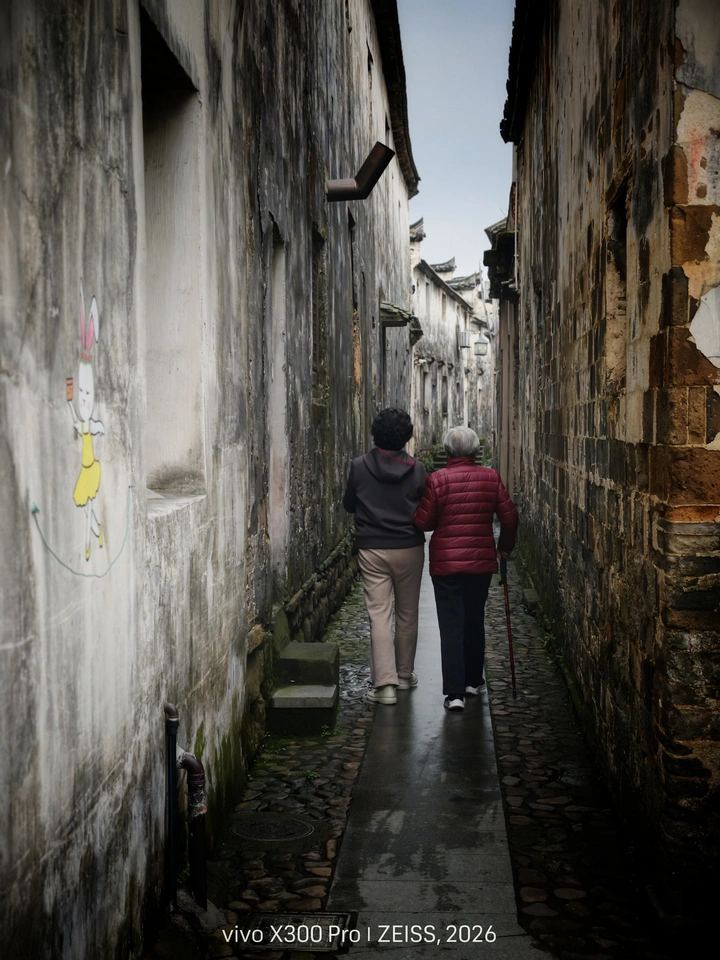 青石板路浸着岁月的潮意,木窗棂里藏着未凉的烟火。老人在水边浣洗,猫狗在檐下打盹,斑驳墙面上的涂鸦与老画,都是时光刻下的温柔。古巷深处,步履缓缓,每一处烟火日常,都是江南村落最动人的诗行。