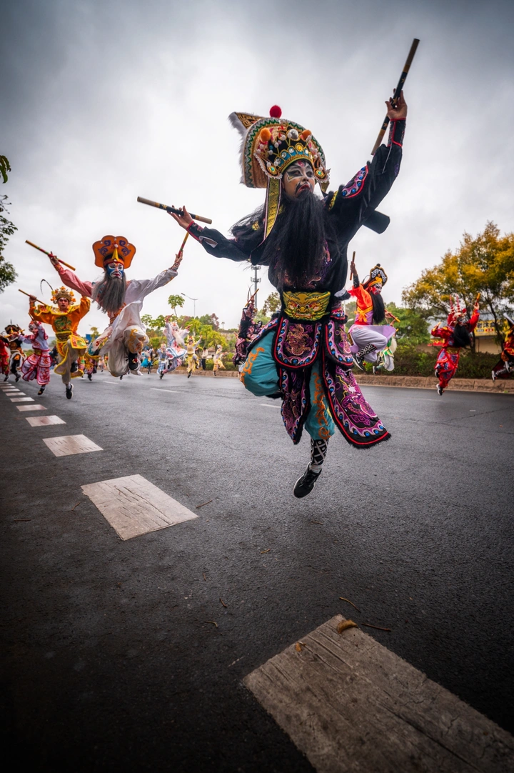 今年过年回了梅州大埔老家,大年初一趁着那天不走亲戚一大早往返开了300多公里到棉北看新春汇演,中午又跟着龙井双数英歌队游了一会街。 第二次是年初六也是刚好空出半天时间,凌晨3点开车出发去追凤岗英歌,可惜抵达时天下着毛毛雨没有阳光,6点跟到8点半便匆匆返程了。