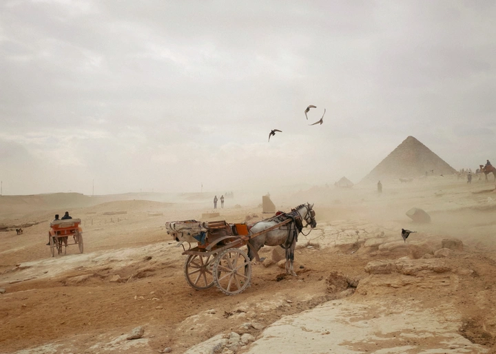 第一次跑这么远拍照。三天里,我去了博物馆、教堂、亡灵城和居民区。每个地方待不久,但眼睛一直没闲着。看到有意思的画面,心里嘀咕“这个得拍”,手里快门已经按下去了。开罗像个热闹的混片场。金字塔在城边上杵着,和想象里不太一样——不远处就是楼房和马路。在哈利利市场里钻来钻去,镜头差点撞上挂满的灯;沙子、喧闹、混杂的气味,全都掺在一块儿,让这座城市格外上镜。
