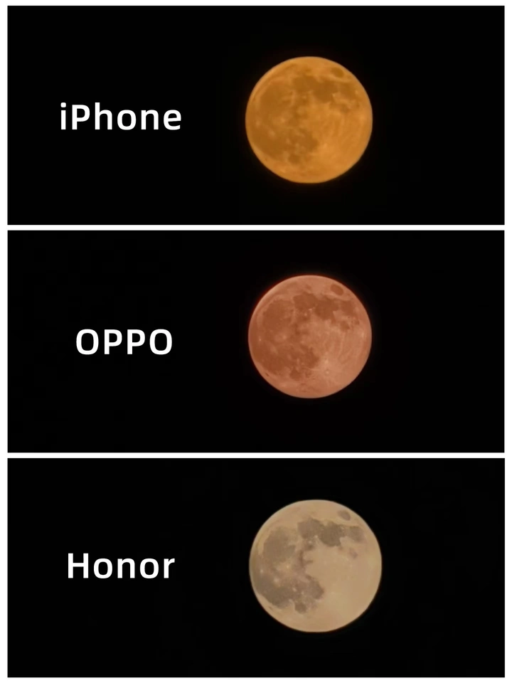 3款旗舰机拍月亮大PK,原图直出谁更胜一筹。 分别是iPhone 17pro,OPPO Find X9 Pro,荣耀magic8 Pro。