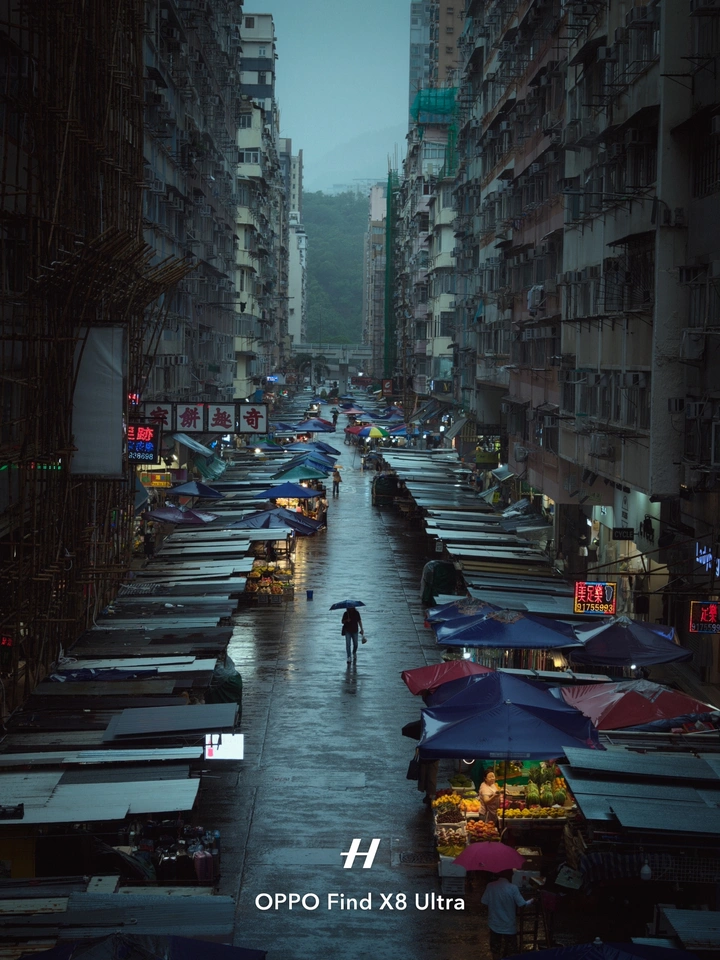 香港街头的夜景,霓虹灯闪烁,港式招牌散发着独有的港风韵味。OPPO Find X8 Ultra 就像一位隐藏的摄影大师,把这迷人的夜景与人像完美融合。