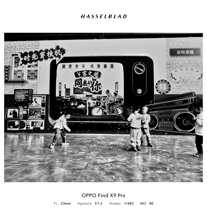 复古的“时光穿梭机”布景,像是从旧时光里搬来的回忆匣子,而孩子们的嬉戏打闹,却给这黑白的回忆镀上了鲜活的童真。