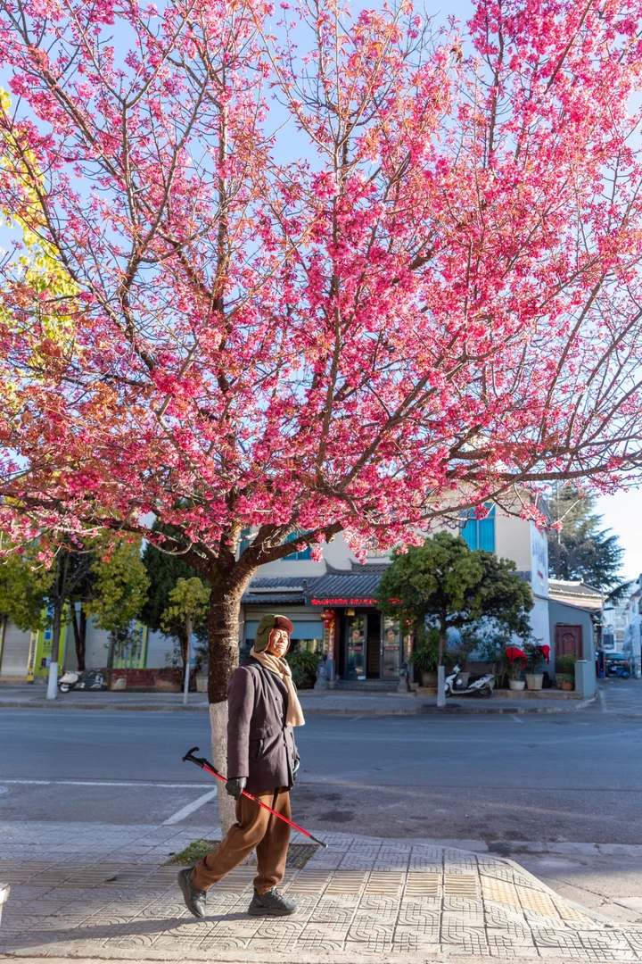 盼过中济海畔水杉似火染红半边天,看过白沙壁画旁银杏如金毯铺地,等过拉市海边候鸟掠过波光水面……当新年钟声敲响,丽江人心里又生出新念想:大理樱花都开成海了,咱丽江冬樱何时惊艳登场? 别急,不骗你,丽江冬樱已悄然绽放! 它没有春天那绵延数里、铺天盖地的盛景,却以低调惊艳之姿,散落在城市街巷、老宅院落、寻常路边。如点点星火,点亮高原清冷冬日,为辞旧迎新添一抹温柔热烈色彩,似大自然精心准备的新年礼物。