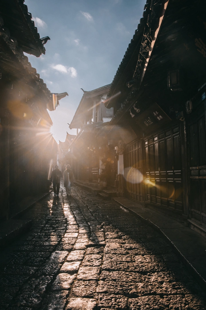 晨光中的丽江古城,没有午后与夜晚的喧嚣,宁静而柔美