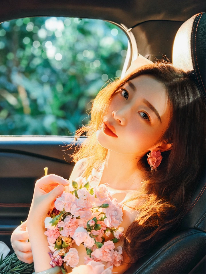下午四点的阳光,斜斜地照进来,像个慷慨的共犯。 那根戳破现实泡泡的针,是她发丝边缘的金线。 逆光里,每一根头发都成了光缆,输送着温暖的信号。花瓣的脉络在光里变得透明,像一层层被点亮的翅膀。 拍摄OPPO X8U