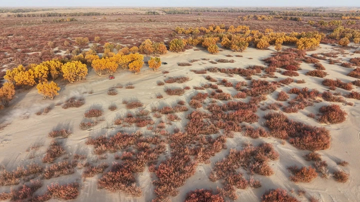 秋天的塔克拉玛干沙漠无人区, 秋天的达里雅布依胡杨林, 真的太美。 over,么哒。