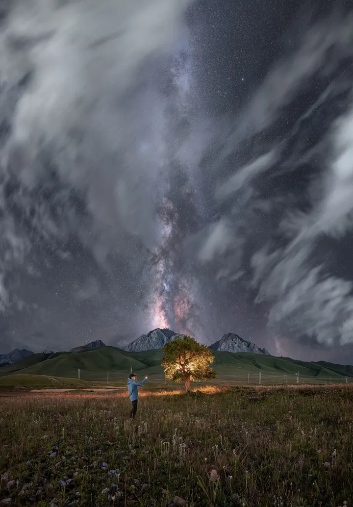 和曾经的自己仰望同一片星空! 这是这次星空之旅的第二颗树,相比第一颗树所在的位置,会更加难到达!但是能出片一切都值得! 拍摄时间:8.18 拍摄地点:甘孜玉科 拍摄流程:天空部分用赤道仪拍摄了80sx2,地面部分拍摄了30s! 拍摄器材:z6ii改机+1424f2.8 (9.6-9.9号月全食银河之旅,招募ing)