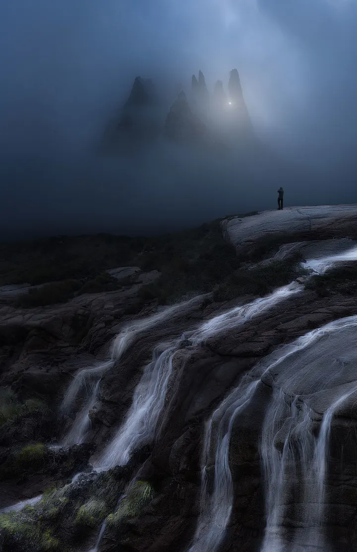 危险拍摄,请勿模仿 这次本来是去拍月全食的,结果路过莲宝叶则一看天气大雾,就想着极端天气出大片,想都没想就冲了!视频是蓝调前拍的,照片是蓝调的时候多张堆栈的想着瀑布能拉丝!