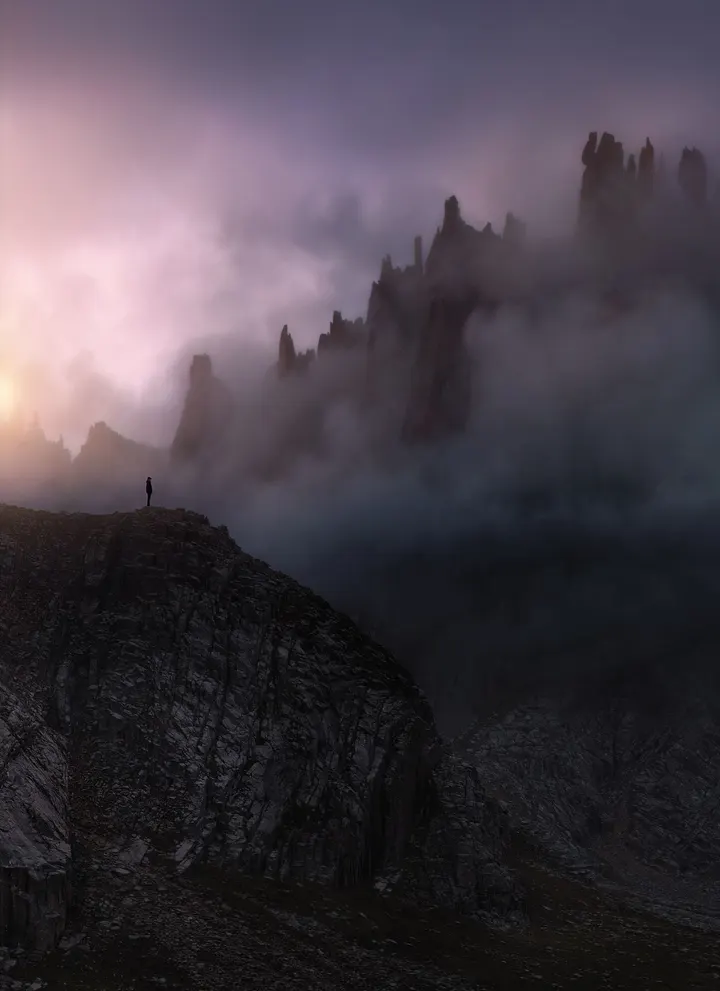 想要拍出极致的风光照片,靠两样东西: 一是运气二是勇气! 运气是指有天气和窗口供你拍摄 勇气是指你敢去面临各种攀爬挑战和抵抗各种极端天气!