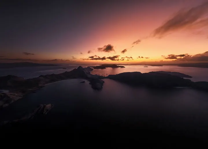 那便唤作晨曦的序章: 当第一缕橘色刺破暗紫的天幕,晨雾里的岛屿正从夜色中舒展轮廓,海面驮着碎金般的光纹轻轻起伏