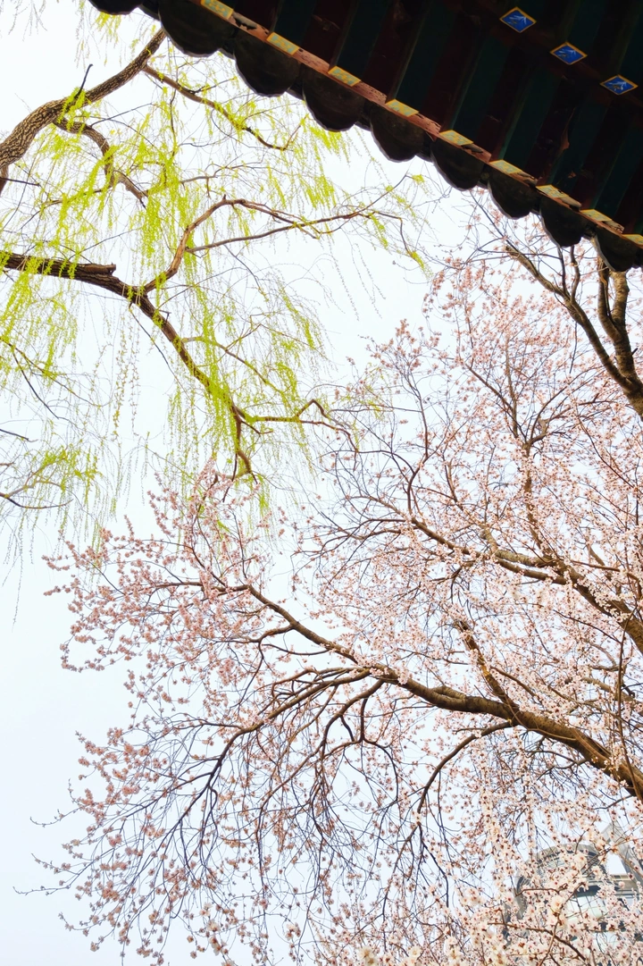 在古建飞檐下抬头,柳丝抽新绿,粉樱漫枝头,风里全是春天的温柔。按下快门的瞬间,把这份治愈的春日浪漫永久收藏。