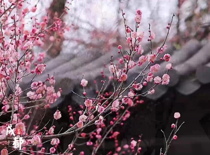 文殊院的红梅悄然绽放,宋式光影里藏着冬日的温柔,一枝疏影,暗香浮动,是独属于老城的新春诗意。
