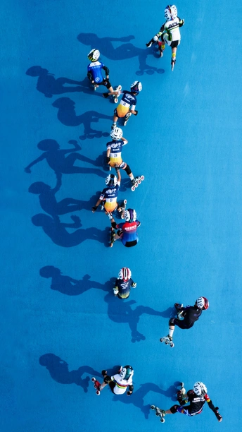 阳光下的跑者,跑道组成的线条如同乐谱,那一个影子就像孤独的音符。