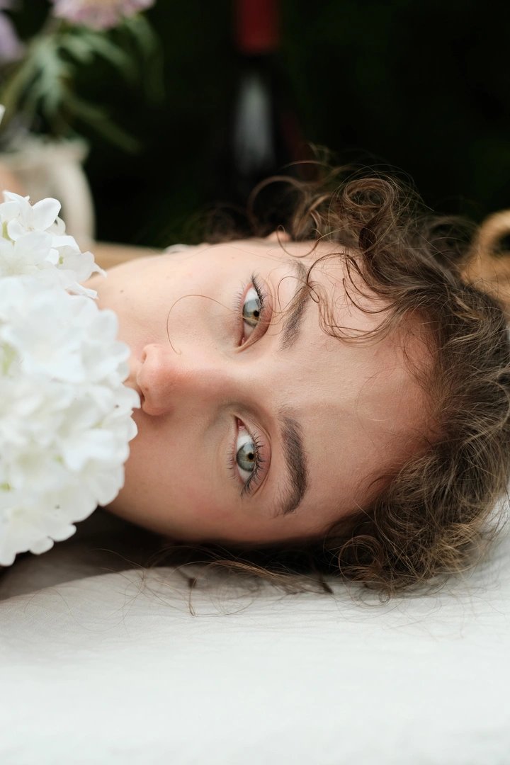 当白绣球贴近眼眸,才发现温柔从来不是远方的风景,而是凝在瞳间的那一抹软光。
