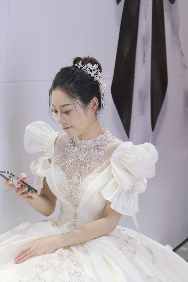 婚博会现场婚纱模特休息间隙摸鱼随拍