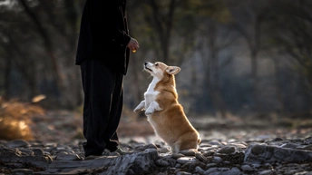 阳光下奔跑玩耍的柯基