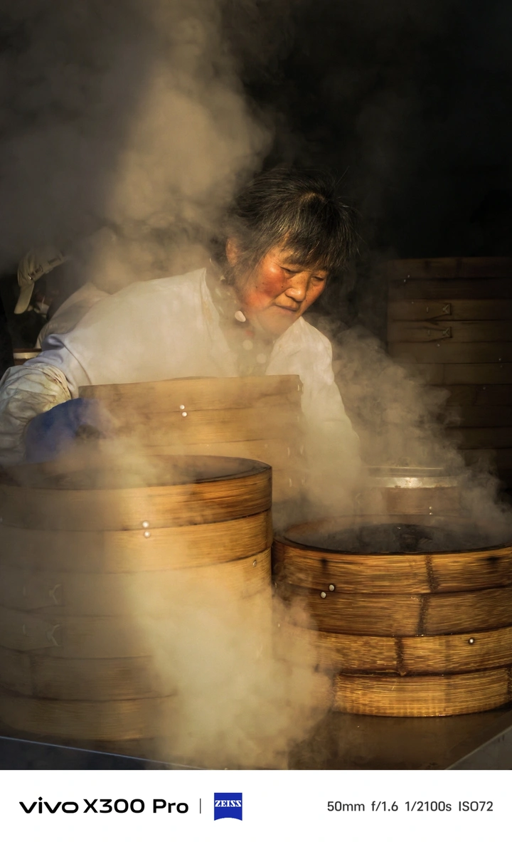 这张照片无关刻意营造的光影反差,而是市井里稍纵即逝的真实瞬间。蒸腾的热气与晨光交织,漫过店主鬓边的白发,让我想起母亲常年辛劳的模样。老店数十年的坚守都凝在这缕白发里,这份带着温度与生活重量的画面,比任何刻意的光影都更动人,一旦错过便再难复刻。