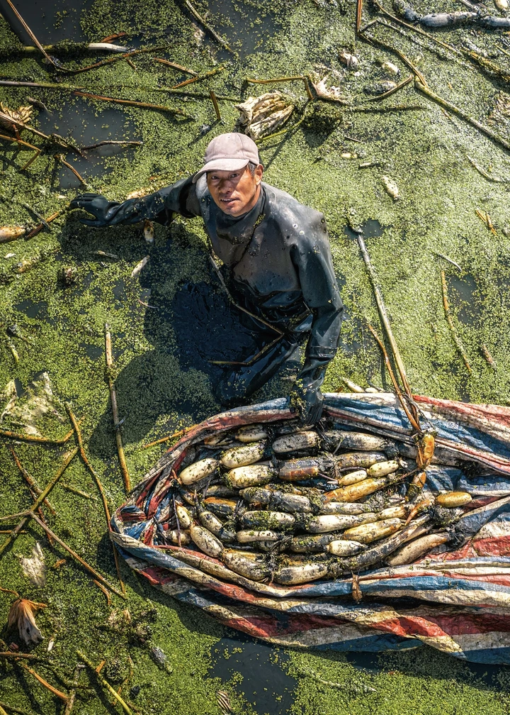 1张田间挖藕人