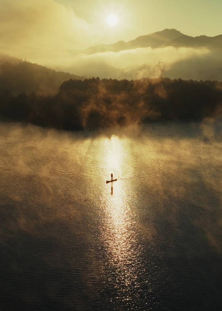 1张晨雾里的独行