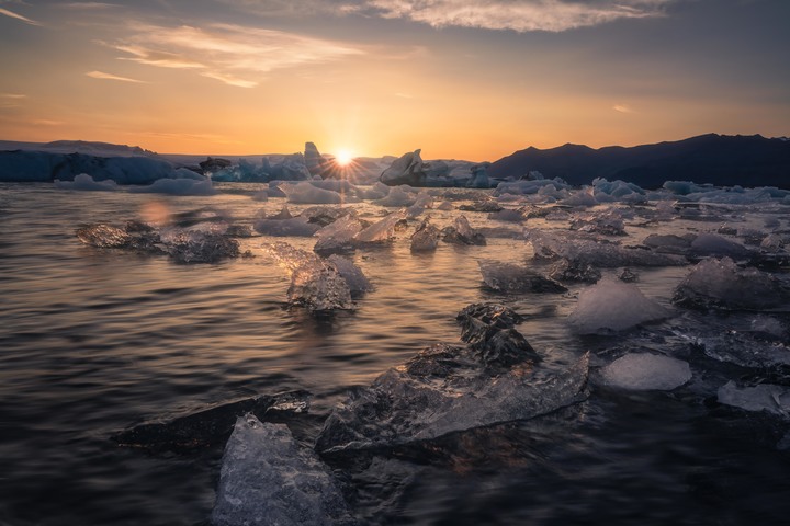 冬天的冰河上有很多这种雪包,冰花的前景,我们用低角度拍摄他们会形成美丽的细节丰富的前景,围绕这些美丽的元素来修图,看看我如何加强操作。