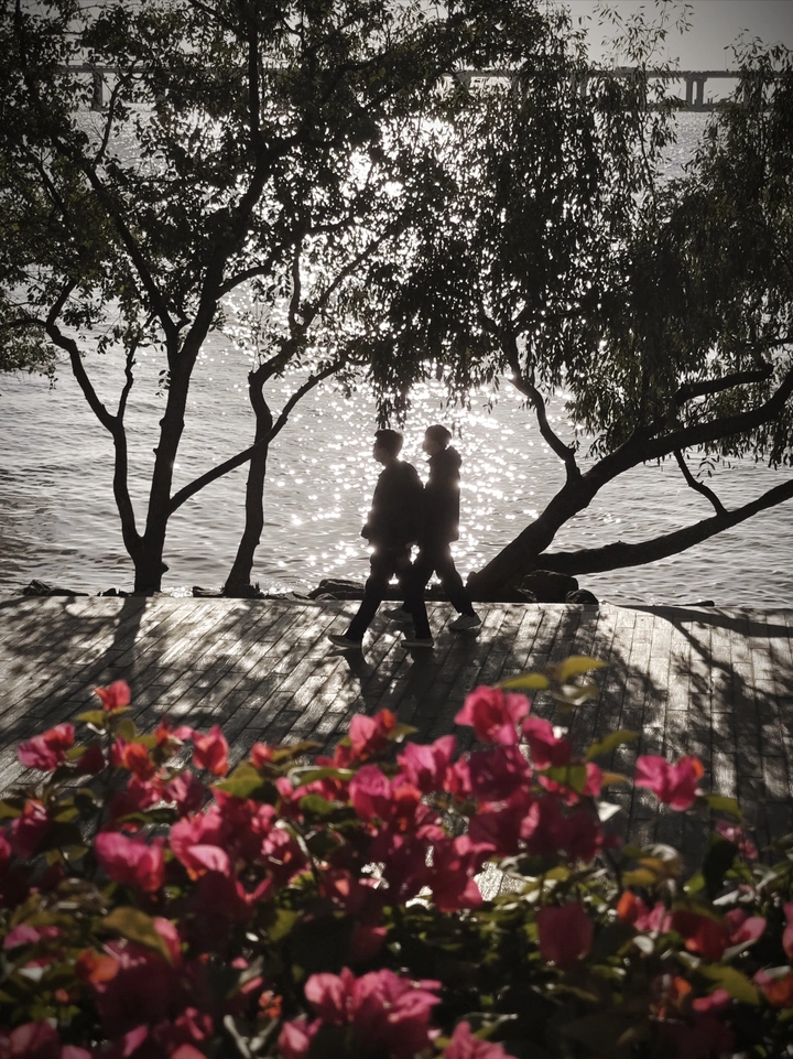 手一同走过那条小路,目睹了太阳升起又降落的迷人瞬间