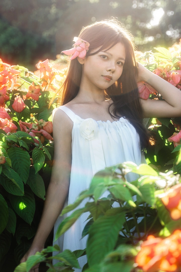 花簇蹭过裙摆,风先扑进臂弯