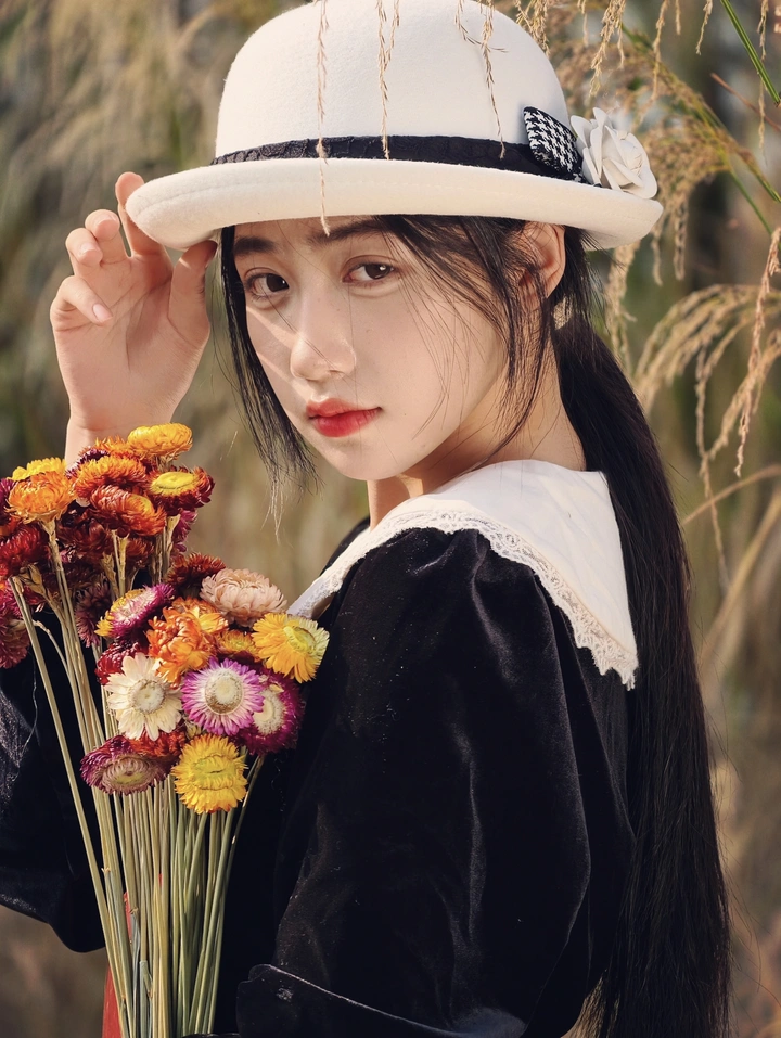 秋风掠过芦苇荡时,她撑着蕾丝伞踏入这片荒草。旧书里夹着泛黄的信笺,干花的香气混着草叶的清冽,像撞进了一场尘封的旧梦。白帽檐遮住半缕阳光,指尖抚过书脊的纹路,仿佛听见多年前的晚风,正穿过时光,在芦苇丛里轻轻回响。