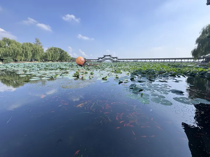 古莲桥位于江苏省昆山市锦溪古镇入口处的五保湖中央,是一座由朱红色亭台和廊桥组成的景观桥。桥体设计独特,飞檐翘角的亭子与狭长的廊桥相连,倒映湖中形似莲花,被誉为“古典江南的一张名片,是锦溪古镇的标志性建筑。古莲桥的建造与南宋孝宗赵眘的爱情故事密切相关。相传隆兴二年(1163年),宋孝宗携陈妃途经锦溪,陈妃因被金兵俘虏后投湖自尽。孝宗为纪念她,在五保湖畔建莲池禅院,并修筑水冢安葬其遗躯。古莲桥因此成为这段凄美爱情的见证,锦溪镇也因此一度更名为“陈墓”