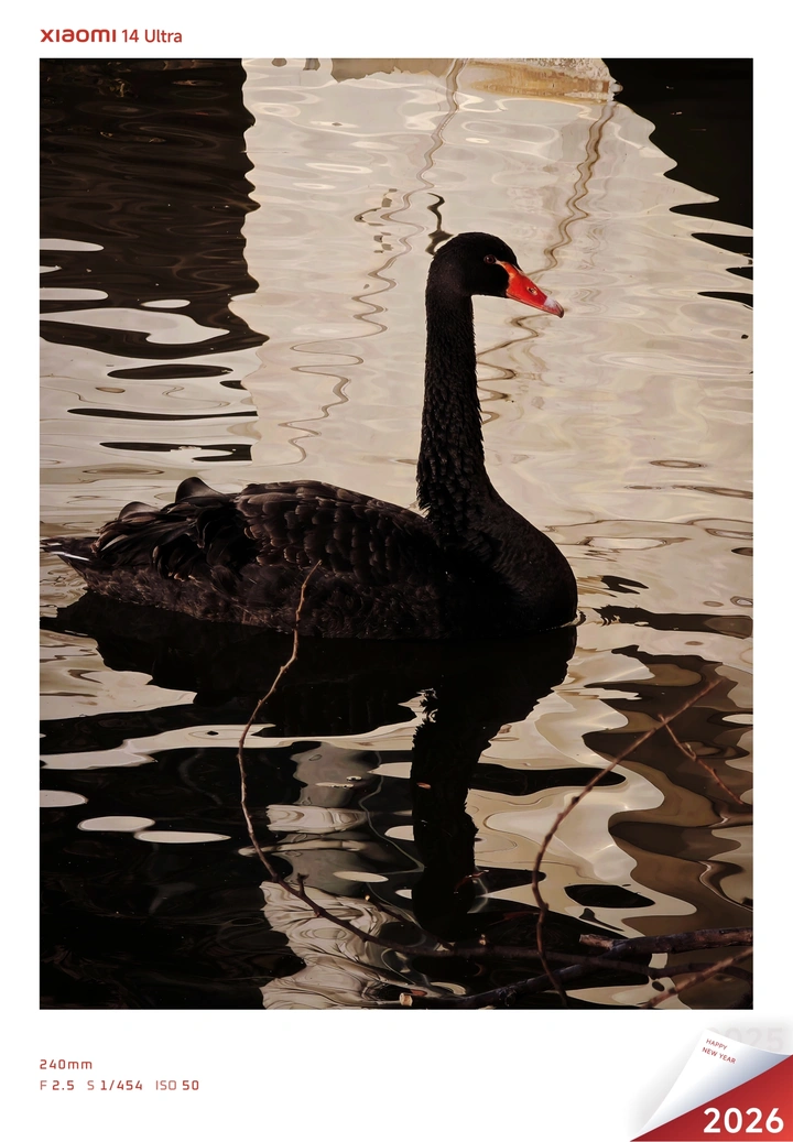 黑天鹅墨羽如缎,白鹅和白鸭洁白无瑕,红喙点缀,游弋于粼粼清波之上,倒影随涟漪轻晃,尽显静谧优雅和呆萌。