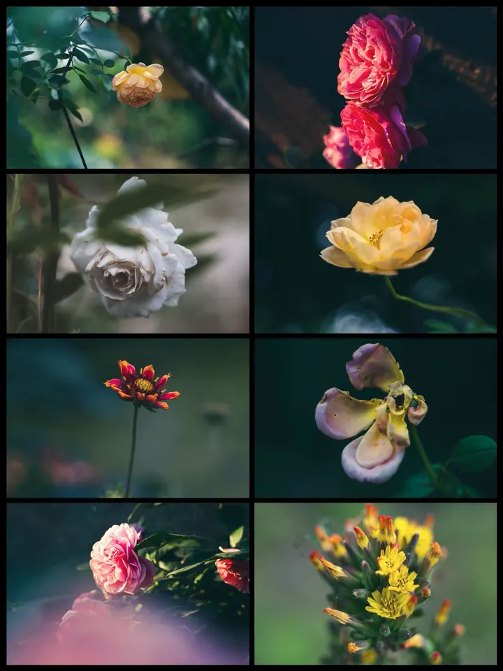 镜头追着光影,把每一朵花的心事都拍成了电影🎬 • 初绽的黄玫瑰,是春天递来的第一封情书💌 • 热烈的红蔷薇,在暗夜里燃烧成最艳的火🔥 • 白玫瑰的温柔,藏在层层叠叠的花瓣里,像一场不慌不忙的梦🌙 • 残瓣也有风骨,枯萎的姿态里,是时光沉淀的故事📜 • 小雏菊在风里摇晃,把细碎的阳光都揉进了花瓣里🌼