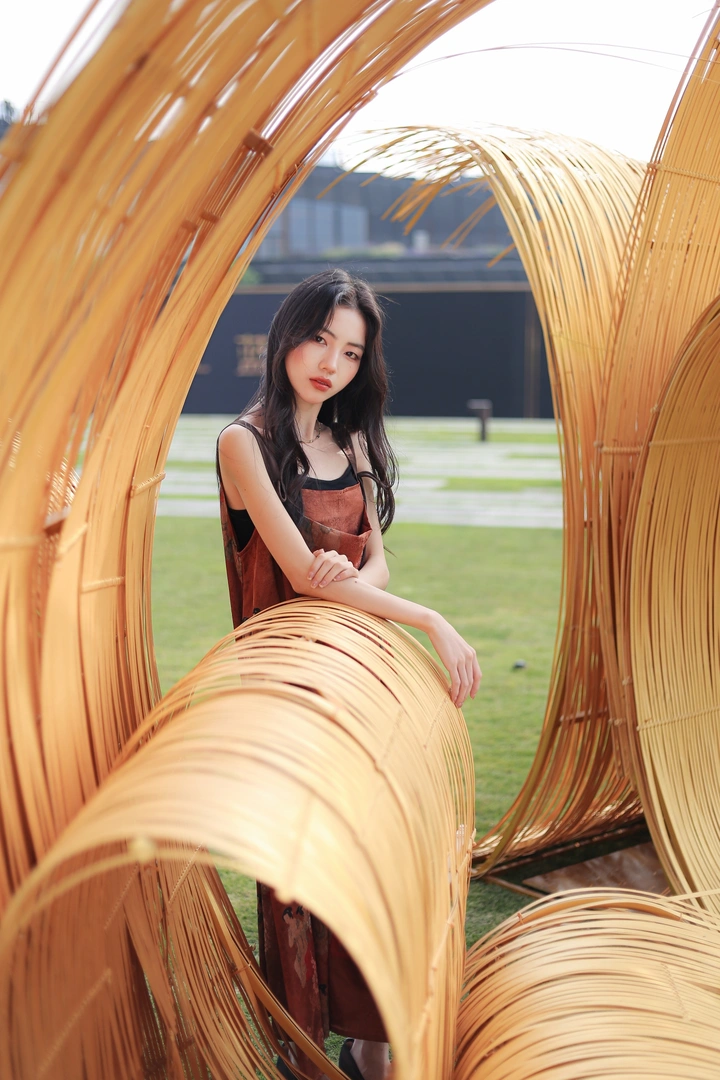 闯入一片金色编织的海浪, 当竹条化作海浪,静止也有了流动的诗意。