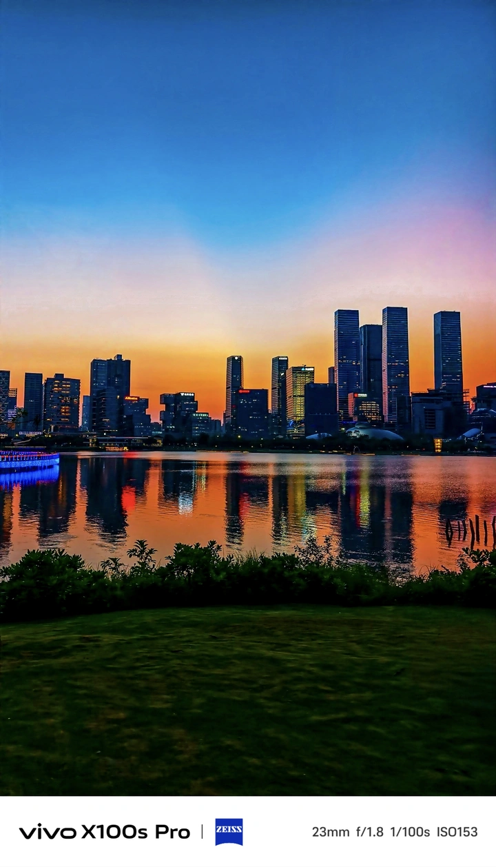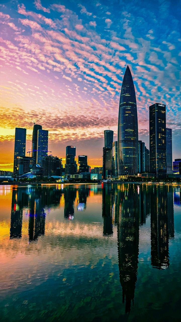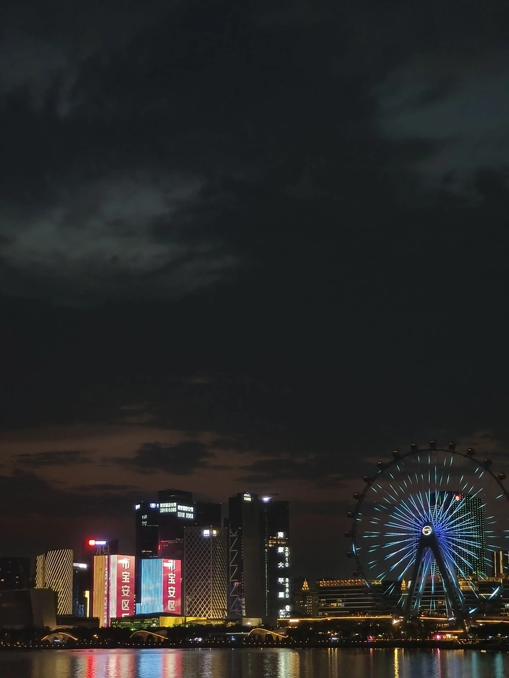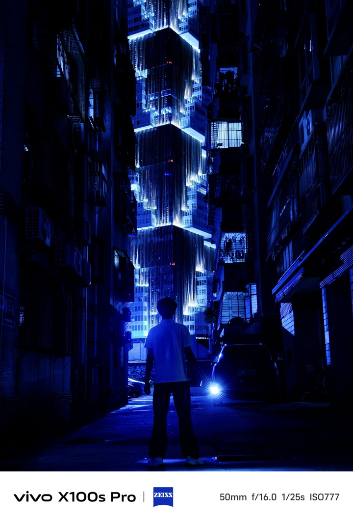 捕捉创维建筑的独特光影, 环形蓝光与镜面倒影交织,科技感拉满。