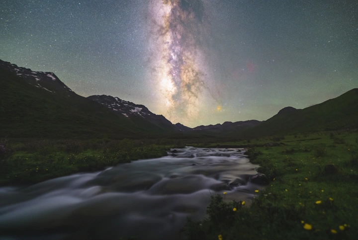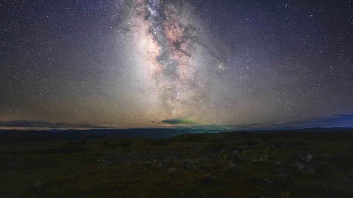 当夜幕降临,天空突然下起了暴雨,凌晨十二点乌云开始散开,大雨过后的天空变得格外清澈。星星们一颗接一颗地亮起,像是在为这片土地编织一件璀璨的外衣。