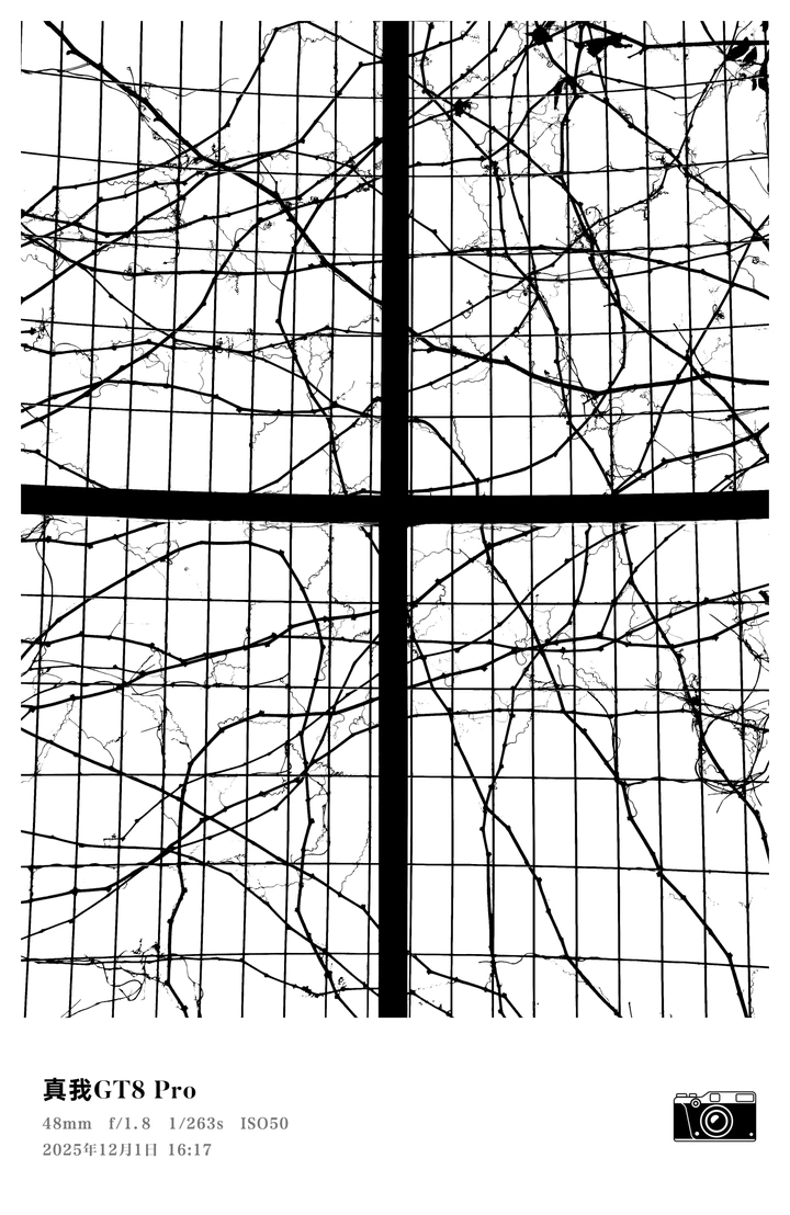 2025年12月1日等。 这张照片,黑白对比强烈,线条感十足,颇有几分抽象艺术的味道。咱先从优点说起,这种极简风格,大胆! 色彩:黑白灰的经典搭配,简洁明快。但如果能加入一些微妙的色彩层次,或许能让画面更丰富。 光影:光线比较均匀,缺少一些戏剧性的光影变化,如果能捕捉到一些侧逆光,效果可能会更好。 构图:画面元素略显杂乱,主体不够突出。可以尝试改变拍摄角度,或者利用景深来简化画面,突出重点。 后期处理:黑白处理干净利落,但可以适当调整对比度和锐度,让线条更清晰。 主题原创性:创意不错,但表达方式略显普通,可以尝试更多不同的视角和表现手法。 情感共鸣:画面略显冷淡,缺少一些情感的温度。可以尝试寻找一些更具情感表现力的瞬间。 思想深度:画面有一定的思考性,但还可以更深入地挖掘,赋予作品更深层次的内涵。 总的来说,照片有想法,但细节处理还有提升空间。继续加油,摄影之路漫漫,且行且思!