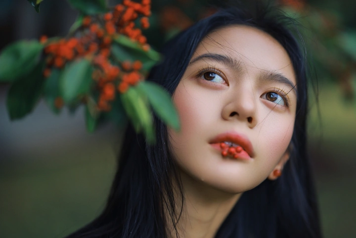 透明伞兜住了风,红果坠着枝桠,橙红的影撞进青林,便成了独一份的风景。