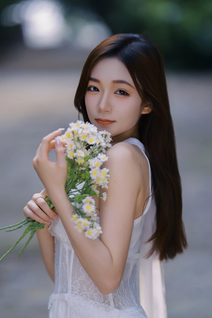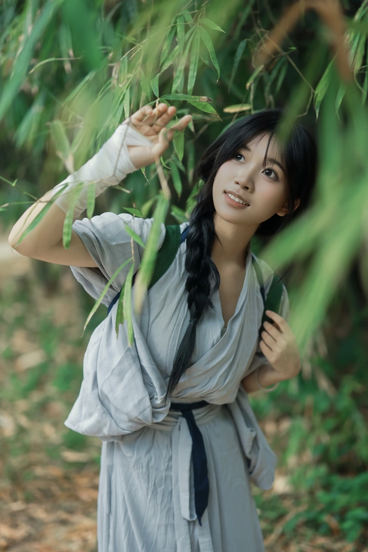 绿意漫入林间,光影落在衣袂。 一袭蓝韵,静立时光深处。 不喧不闹,自有东方温柔。 于草木之间,遇见最从容的姿态。