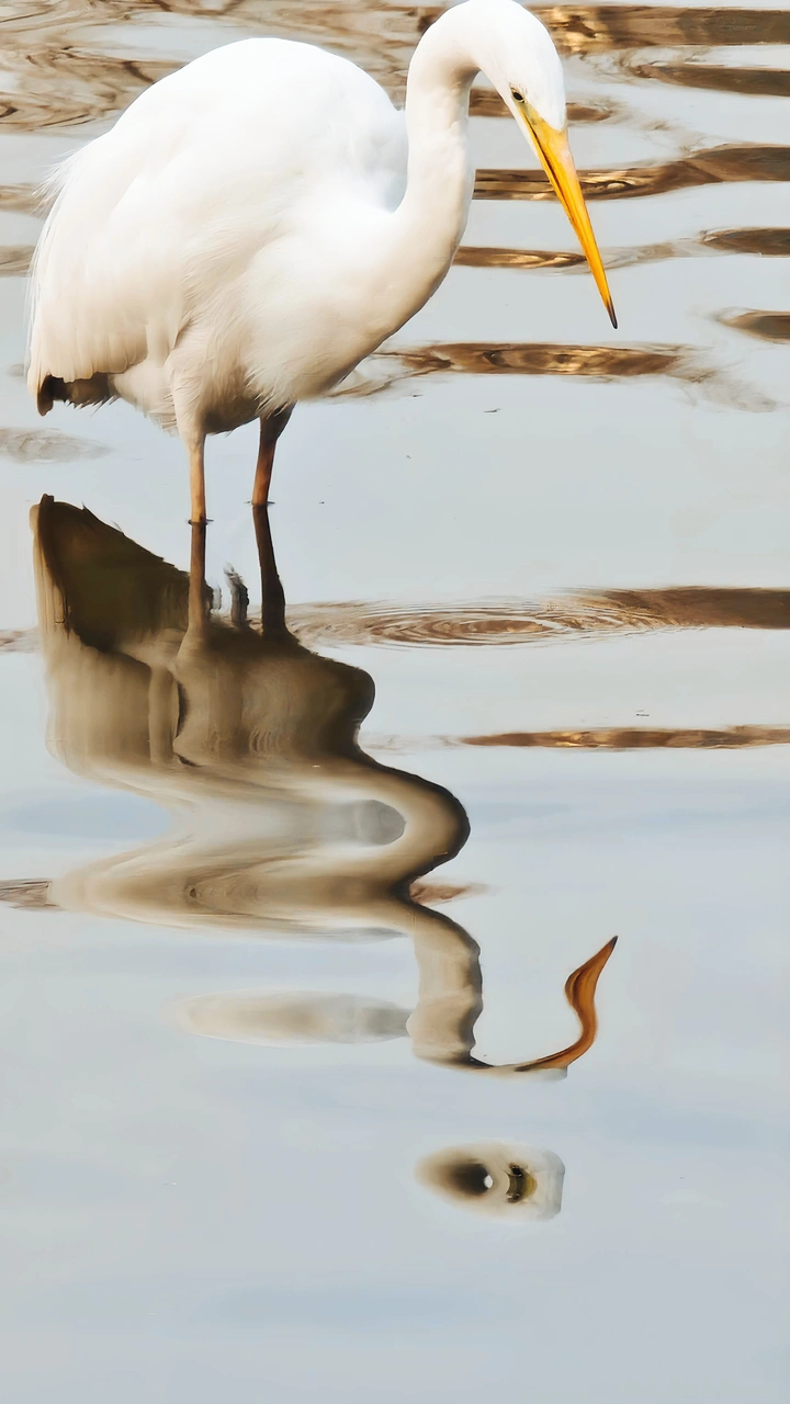 白羽凝霜,长啄如笔,轻蘸涟漪写下倒影的弧度。