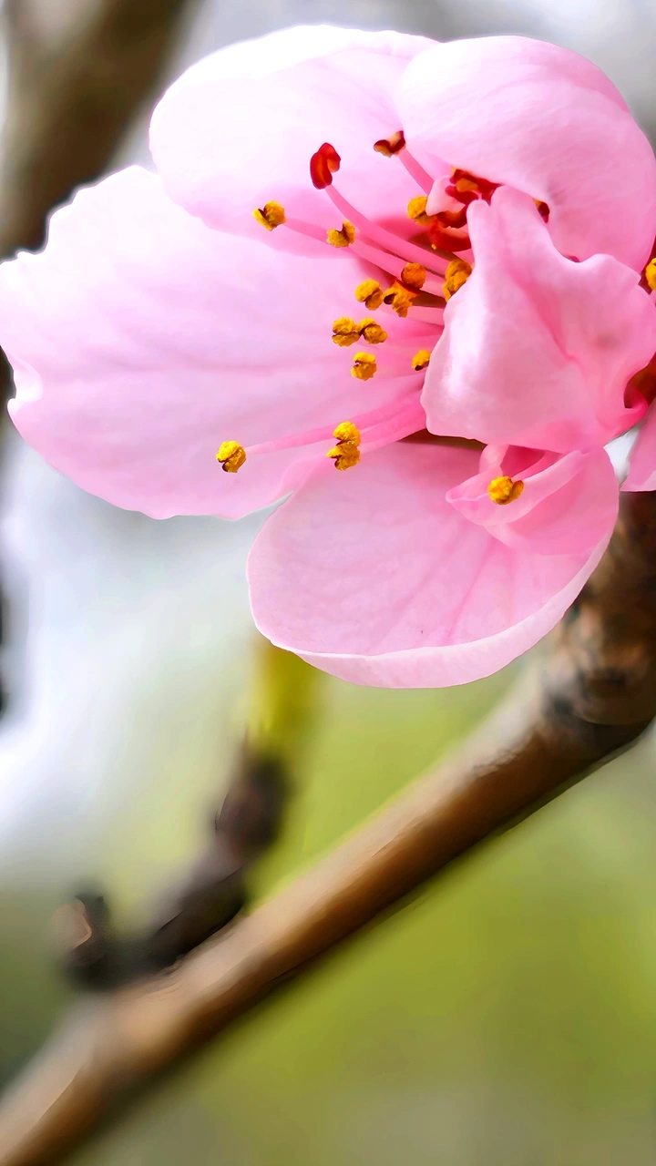 一朵柔粉黄蕊如星,粗糙的树皮,柔嫩花颜,它是刚与柔的碰撞。