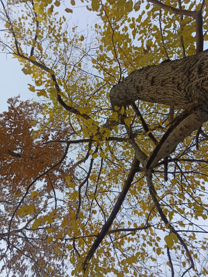 金叶里的秋之骨 仰头时,这棵树把秋的金裹进了枝桠——糙皮皲裂的干,是岁月刻下的骨,撑着满枝碎金似的叶,像把阳光揉进了秋的脉络。 叶是软的金,风过处,簇簇轻颤如星子抖落,把浅蓝的天织成了暖的画框;干是沉的褐,疤结与纹路缠成岁序的诗,让这炽艳多了层韧的底色。没有刻意藏起沧桑,只以枝为笔、以叶作墨,在天际写着关于盛与敛的短章。 这树是秋的使者,把积攒的暖,在岁寒前铺成最亮的光。风裹着叶的软掠过肩头,才懂这金的真意:生命最动人的姿态,从不是盛时的葱茏,是把岁月的痕,织成托举热烈的脊——这是金叶里藏着的秋之骨,让人心底漫起对时光沉实的敬。