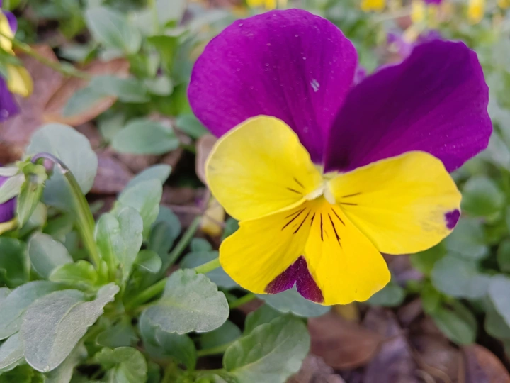 紫黄瓣间的秋野星 杂绿与残叶织就的秋隙里,这朵三色堇以紫黄撞色的瓣,漾开了荒寒的暖。 上瓣是浓得沉郁的紫,沾着星点细尘;下瓣是亮得鲜活的黄,纹脉里浸着浅褐的痕——它没藏起这些细碎的“不完美”,反而把柔揉进舒展里:细茎斜撑着,让紫黄从杂影里探出来,连旁侧蜷卷的枯叶,都成了温柔的衬里。 风过,瓣尖轻颤如星屑抖落,把撞色的艳浸进了秋的凉。这朵花是秋的诗人,以紫黄为墨写着:生命最动人的姿态,从不是单调的盛,是撞色里醒着的软,是荒芜中藏着的光。 哪怕秋雾渐浓,这抹紫黄仍把自己活成荒丛里的诗,让人心底漫起对平凡生机的软敬——原来撞色的艳,从不是刻意的张扬,是秋野里藏着的、最妥帖的温柔。