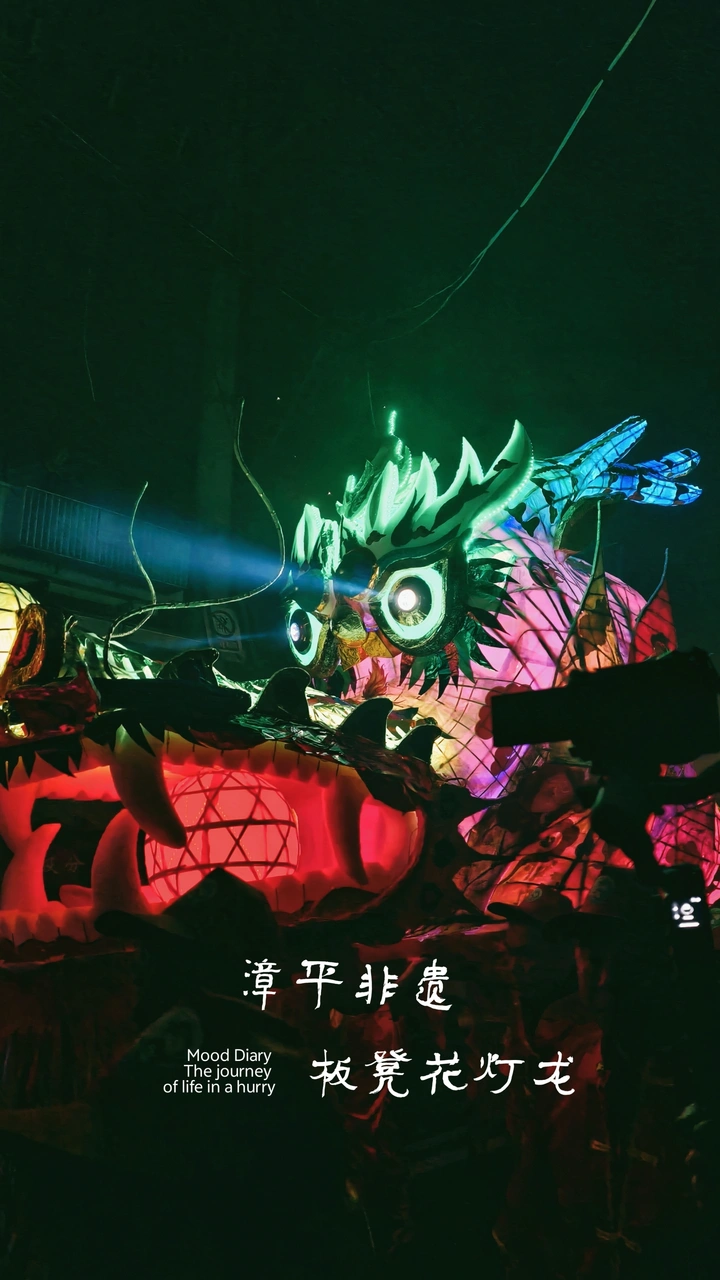 漳平板凳花灯龙是福建漳平新桥镇的省级非遗民俗,起源于清代,距今两百余年历史。龙身以长条板凳为基底,由村民分户制作装饰,搭配竹编龙头龙尾,缀以花灯、剪纸、彩饰与灯带,拼接后可长达数百米。春节、元宵期间,村民结伴举龙巡游,穿村走巷、鸣锣闹春,场面盛大热闹。这项民俗融合传统节气与祈福文化,民众借此祈求风调雨顺、家宅安康,既是乡土技艺的传承,也是当地独有的新春民俗盛会。 P1-6是准备阶段,斩鸡血画龙等仪式、烧纸放炮、龙首尾及部分龙身衔接、小朋友们过节般手拿花灯; P7-12奏乐启程,家家鞭炮相迎,龙身保持传统点蜡烛,龙头经过全村各家后到达主街道,家家搬出各自准备的板凳龙身排队衔接。 P13-23火盆开道出游,龙首精光四射,爆竹礼花不绝,龙身花灯形态各异。龙行走过程时不时还会身躯摇晃,在学校操场、广场会进行盘旋舞动表演。 P24-27礼花绽放,祈祷风调雨顺、国泰民安。