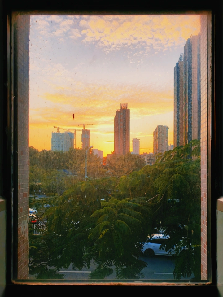 窗外,是被落日揉碎的橘色黄昏。玻璃框住半城烟火,高楼与晚霞相拥,枝叶在风里轻轻摇晃。不必奔赴远方,抬头望向窗外,就撞见城市最温柔的时刻。落日跌进云层,晚风掠过枝头,平凡的日子里,总有这样一抹橘光,治愈所有疲惫,藏着不期而遇的浪漫与温柔。