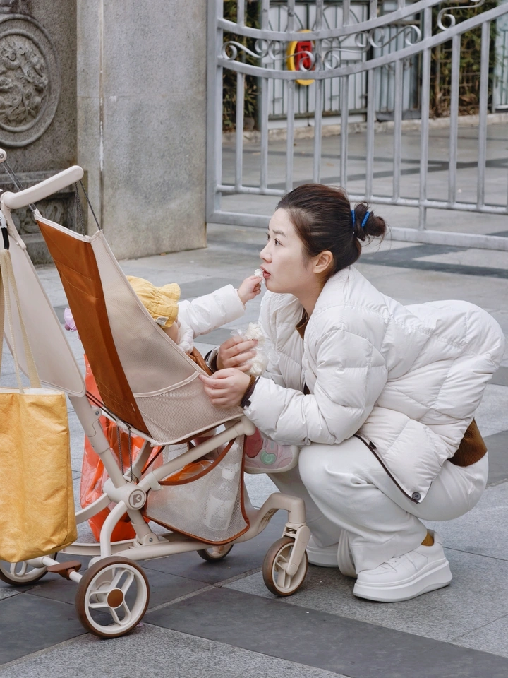 冬日的午后,被小宝贝投喂的瞬间,心都化了。 阳光穿过栏杆,在地上画出温柔的格子。小小的手努力举着零食,递到妈妈嘴边的样子,是这个冬天最暖的治愈。 风是凉的,怀里的温度却刚刚好。